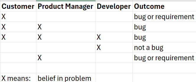 Sometimes, the Customer and Product Manager agree on the bug, but the developer doesn’t: