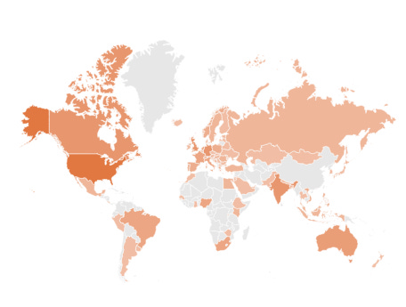 Bad Software Advice has many readers; the average post receives ~10,000 views. These views are from all over the world. The following is a map of where subscribers AND 100 views overlap. As you can see, we have poor US midwest penetration.